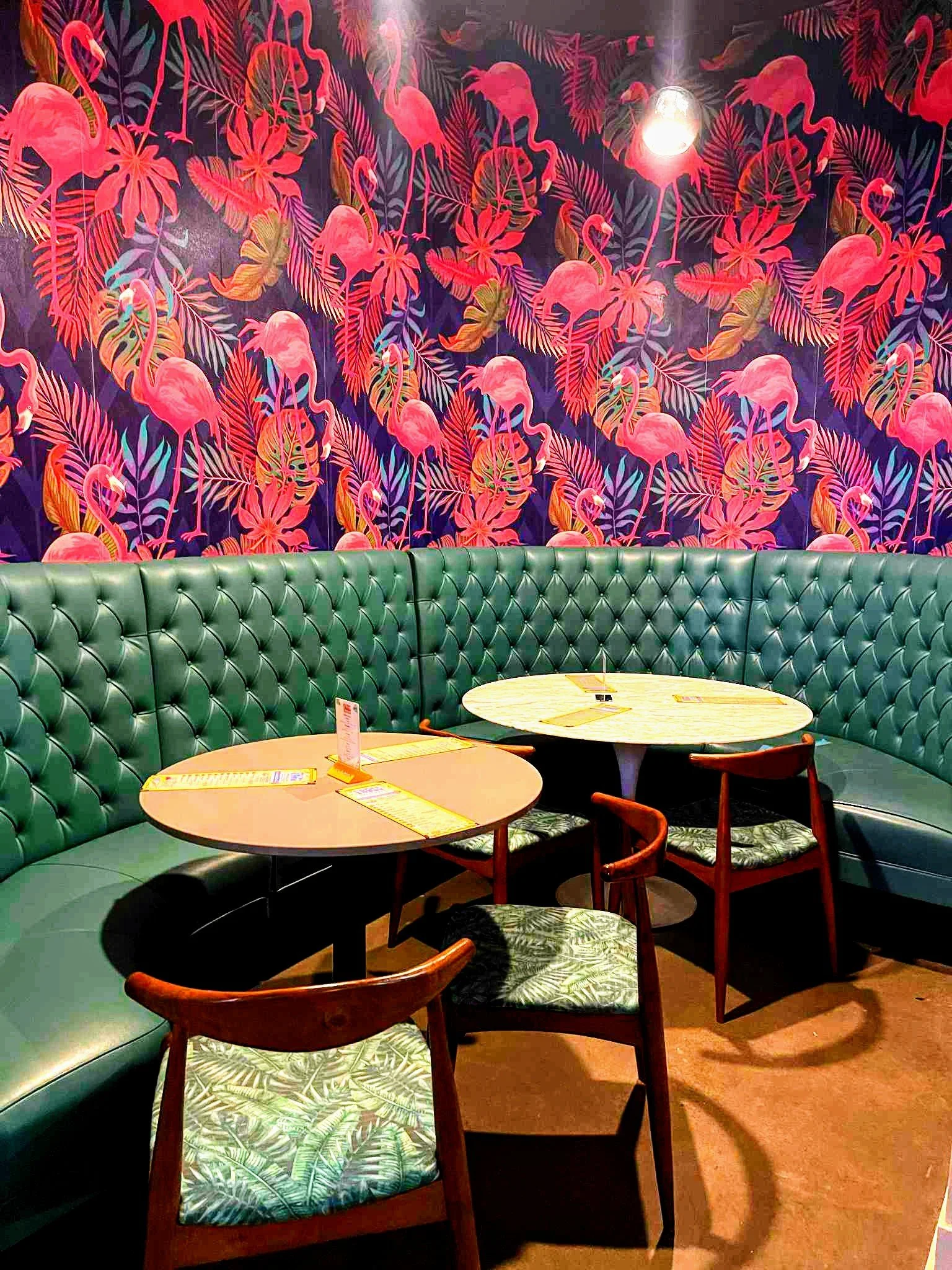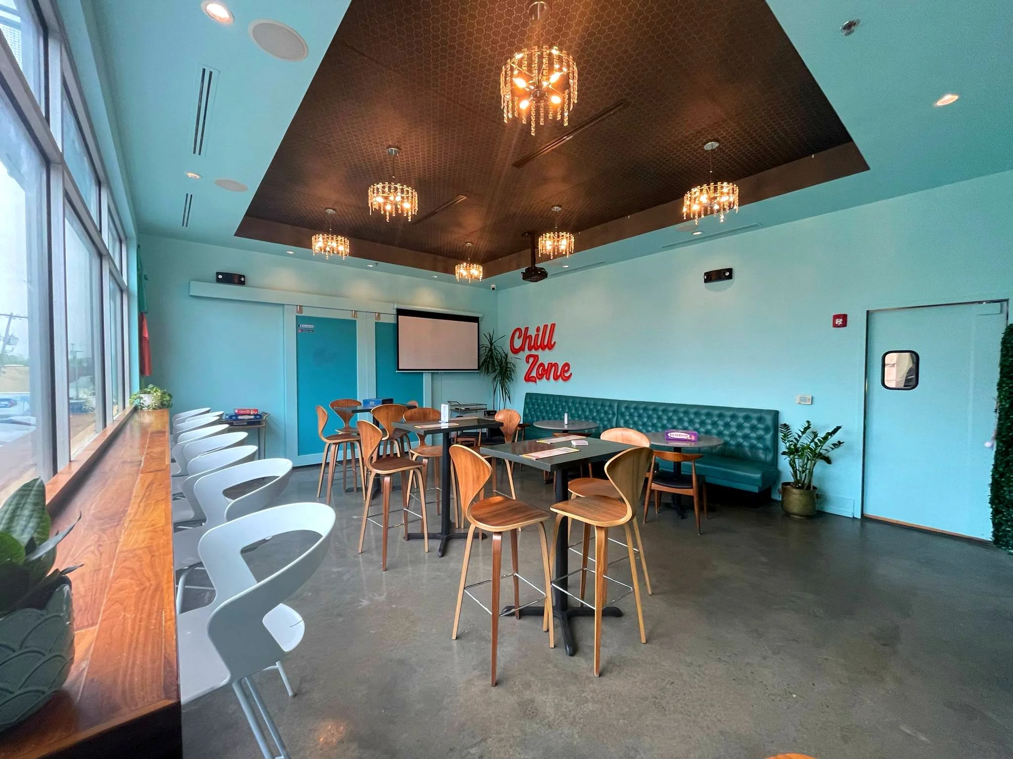 The private event space must be reserved two (2) weeks in advance and has a maximum capacity of 40 guests. A deposit of $100 is required to reserve the space.